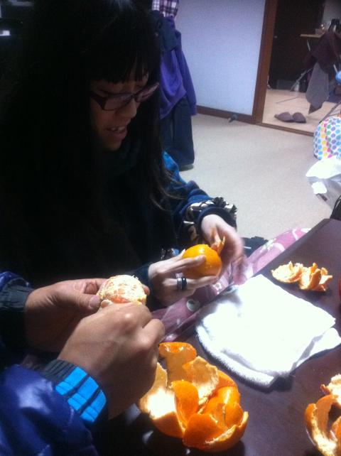 手を伸ばしてみかんを切ってかごに入れるという作業をひたすらしているうちに