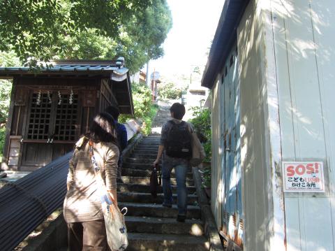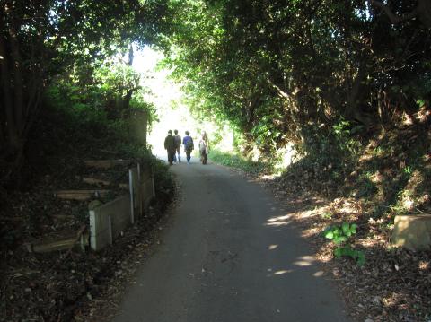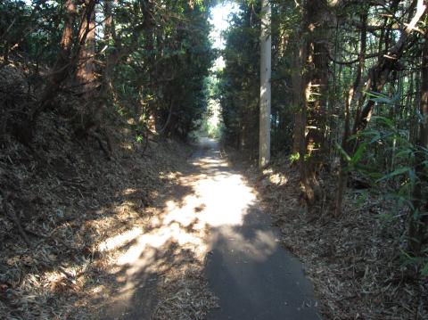 中学校の裏手、山道へ。