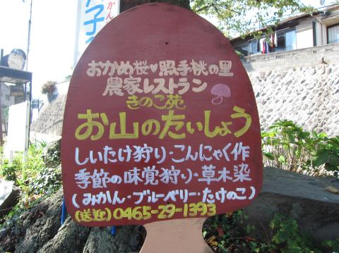 きのこレストラン、お山のたいしょう・・・の看板前です!
